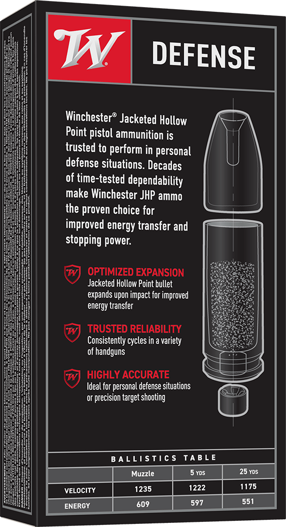 Jacketed Hollow Point bullet expands upon impact for improved energy transfer