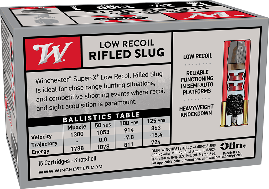 Winchester® Super-X® Low Recoil Rifled Slug is ideal for close range hunting situations, and competitive shooting events where recoil and sight acquisition is paramount.