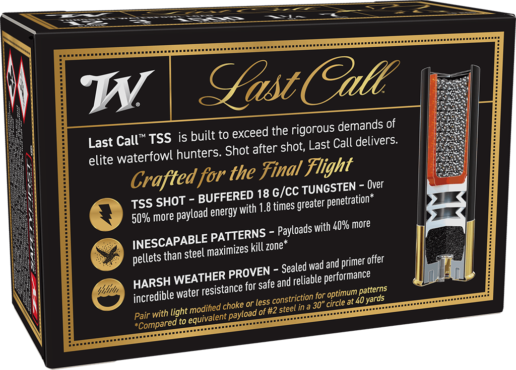 Last Call™ TSS ammunition is built to exceed the most rigorous demands of elite waterfowl hunters. Shot after shot. Last Call delivers.