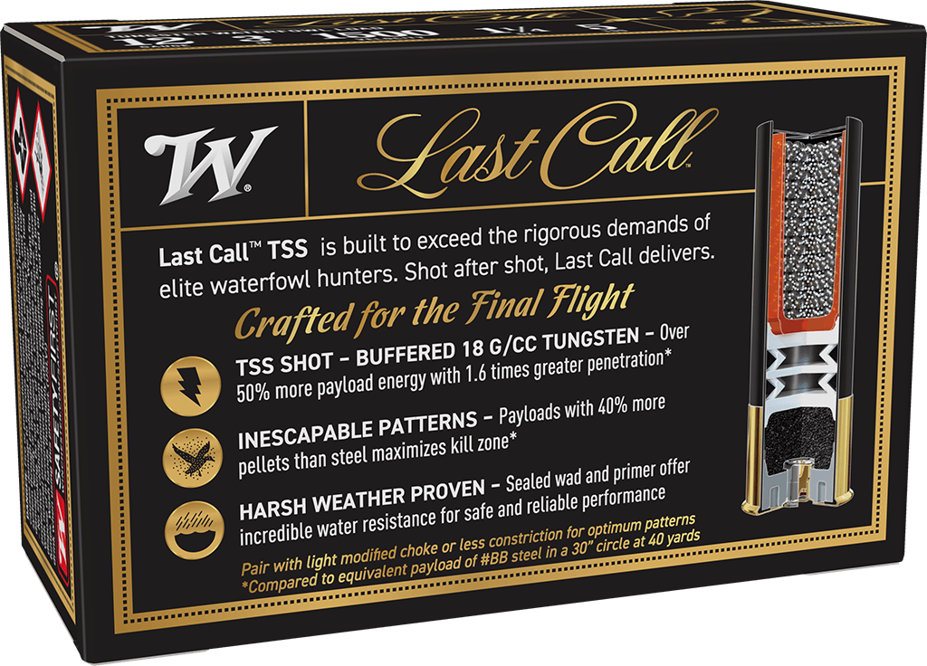 *Compared to equivalent payload of #BB steel in a 30″ circle at 40 yards. Pair with light modified choke or less constriction for optimum patterns.