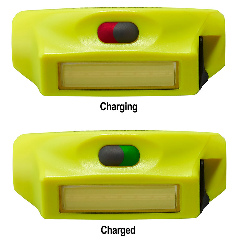 • Push-Button Switch with Charge Status Indicator: red when charging, green when charged