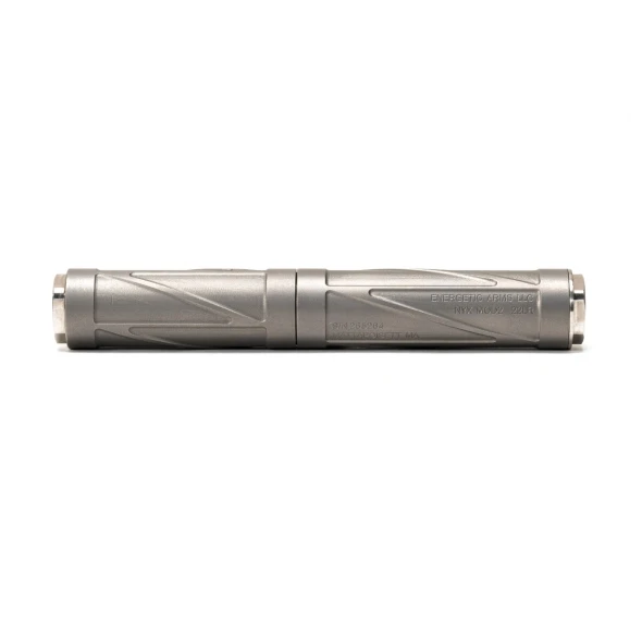 The Energetic Armament NYX™ Mod2 Silencer is a modular version of the is the successful NYX™ Silencer. The shooting community has recognized the need for reconfigurable suppressors that can be tailored towards specific shooting needs and Energetic Armament has responded. The NYX™ Mod2 Silencer is a high performance, all-titanium rimfire silencer that may be easily reconfigured between a short 4-baffle configuration and a full length 8-baffle configuration. Like the original NYX™, its aerospace-inspired tube design represents the state-of-the-art in engineered firearms components with the highest strength-to-weight ratio in it’s class.  This direct thread (1/2-28RH) silencer features a 4 or 8 k-baffle design to provide superior sound reduction while maintaining an extremely light weight at only 2.45 oz (short) or 4.15 oz (full). This represents best-in-class low weight for an all-titanium suppressor rated for 22LR, 22WMR, 17HMR and FN 5.7x28mm.