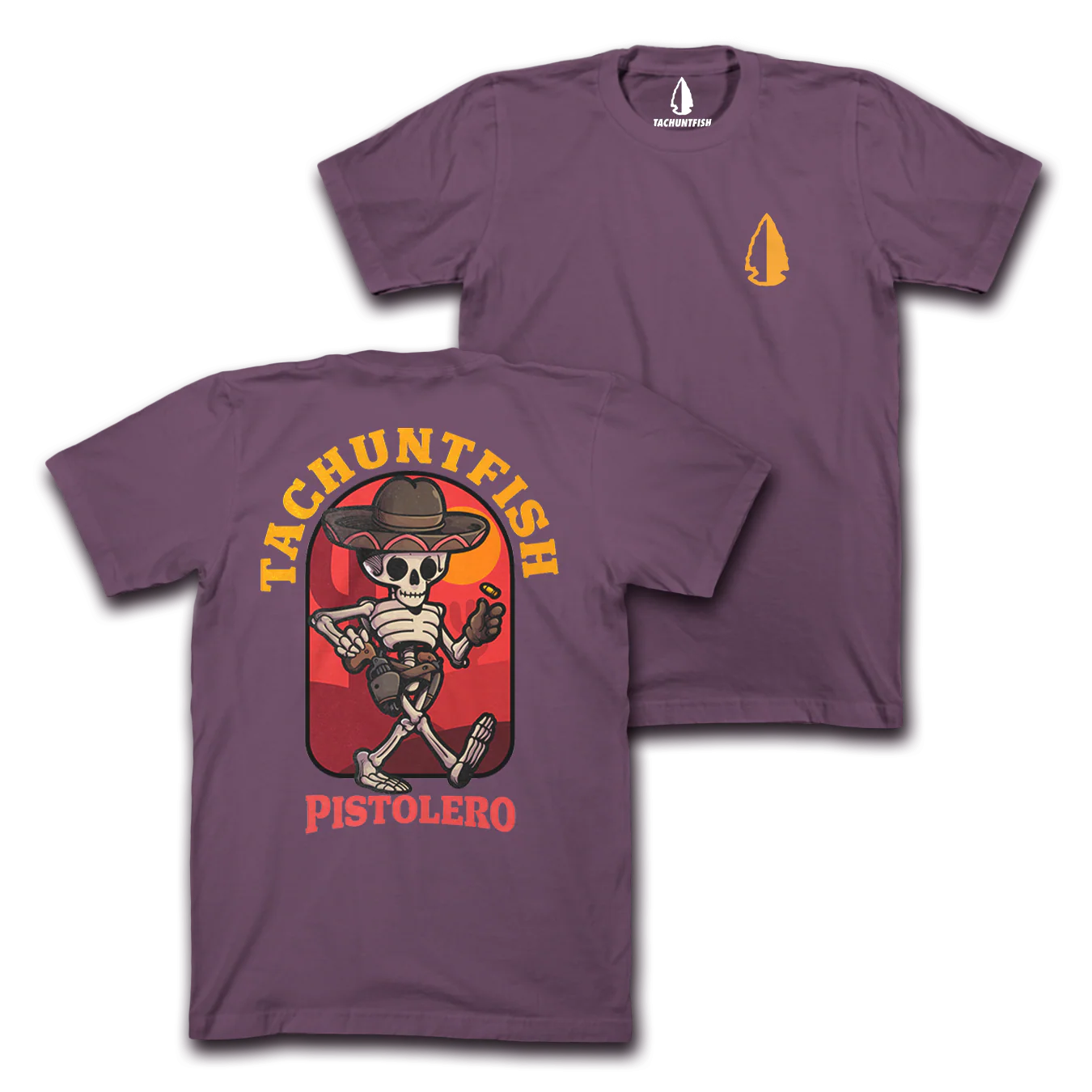 Pistolero Tee; available in Berry and Black on Comfort Colors Blank
