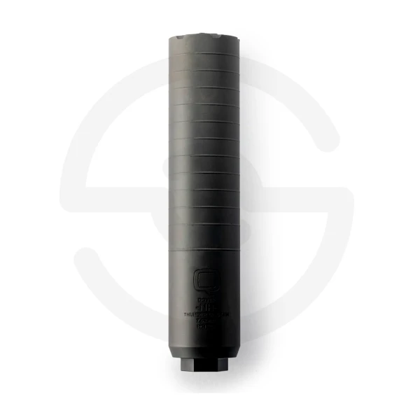 The Thunder Chicken is Q’s full-size, quick-attach answer for .30-cal rifles. It measures 8.13 in long, 1.75 in wide, and weighs just 14.7 oz, thanks to a laser-welded Grade-5 titanium stack that skips a traditional tube. Clamp it to any Cherry Bomb brake (sold separately) or run the included 5/8×24 Rear End for square shoulder barrels. Rated up to .300 Win Mag, the can delivers top-tier suppression and rock-solid repeatability on 5.56, .308, or 300 BLK hosts. Bead-blasted titanium cleans up fast, and wrench flats front and rear make removal easy at the range.