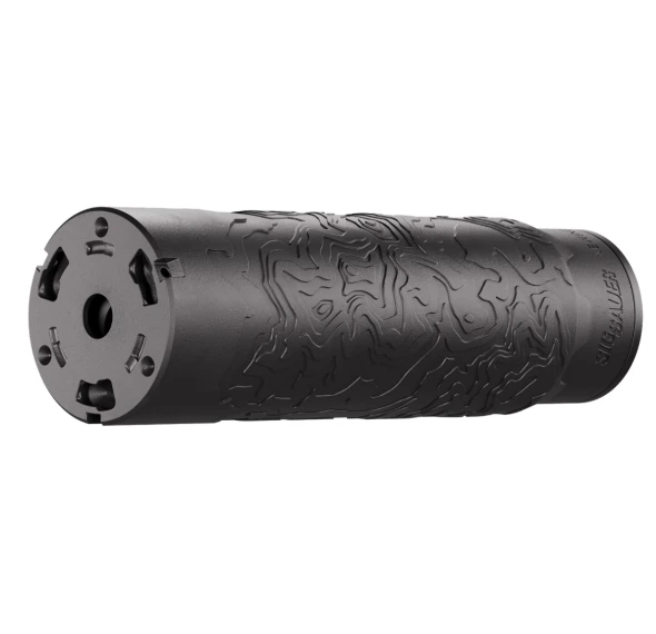 To ensure wide compatibility with fixed-action rifles, the suppressor includes a HUB Direct Thread Mount for a secure and convenient attachment. A modular end cap design supports the addition of accessories, while the exterior features a distinctive topographic pattern finished in black Cerakote for enhanced visual appeal and field-ready resilience.