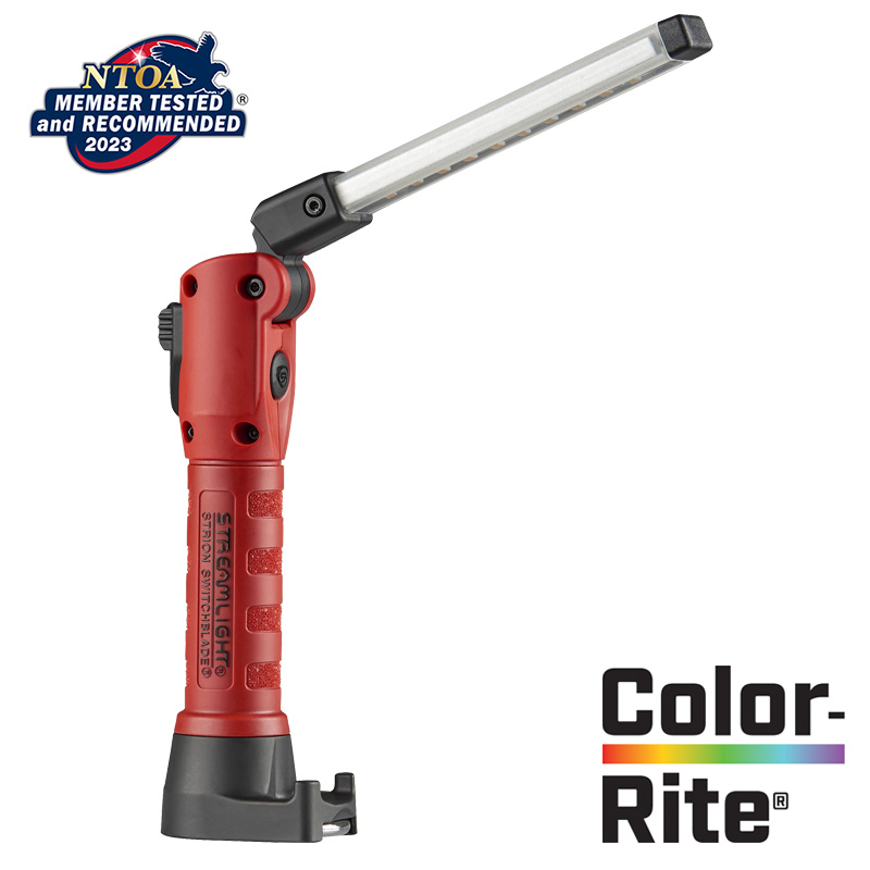 Inspect, identify, and repair with the Strion Switchblade®. Five lights in one: a droplight, hands-free light, UV light, bright white light, and a high CRI light with Streamlight’s Color-Rite Technology®. You can work harder for longer with the PiggyBack® charger and easy-to-change battery – just twist off the endcap, replace and go.