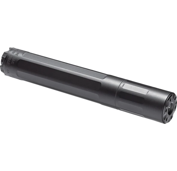 The Surefire Ryder 9M-Ti boasts an ultra-lightweight titanium construction that minimally affects handling without sacrificing strength. This suppressor, developed specifically for 9mm pistols and rifles, contains pig-nose steel baffles that have proven durability and provide superior sound reduction as well as reducing muzzle blast. Also, there is a 2″ module on the front of the suppressor that is removable to reduce overall length from 7.9″ to 5.9″.