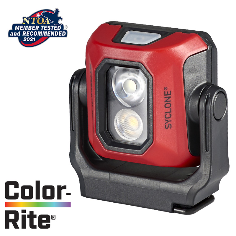 Inspect, identify, and repair. The Syclone® produces bright white light for everyday use or high CRI light with Streamlight’s Color-Rite Technology® for paint matching or identifying color differences in wires. Ultra-compact design doesn’t get in the way, plus it fits in small spaces. Go hands-free with the flat, magnetic base and stowable hook.